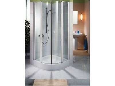 DUSCHWANNE: BetteCorner Duschwanne mit Schürze mit BetteCorner Duschabtrennung WASCHTISCH: Duravit Dellacor ARMATUREN: Hansa HANSARONDA
