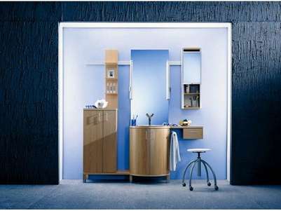 BADMÖBEL: Kama Tao Buche Dekor natur Thermoform WASCHTISCH: Kama Thermoformplatte für Aufsatzbecken Alape ARMATUR: Hansgrohe Axor Starck