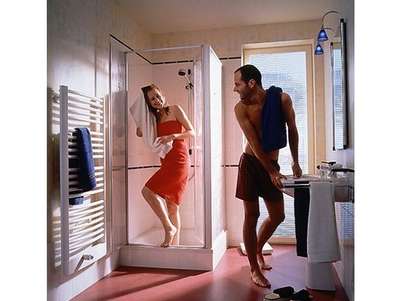 DUSCHKABINE: Kermi Nova 2000 HEIZKÖRPER: Kermi Credo Ventilbadheizkörper